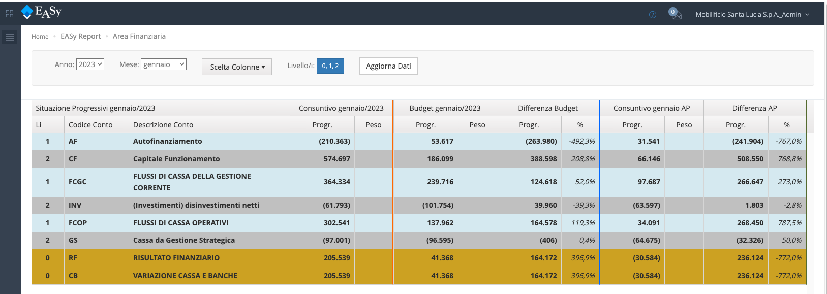 - Consente di monitorare gli scostamenti dell’andamento rispetto al budget e alla situazione