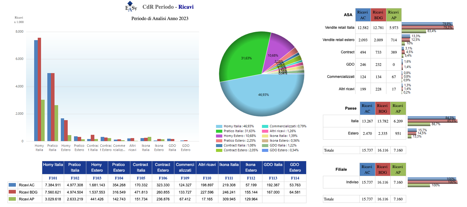 - Aggrega i dati contabili ed extracontabili raccolti dall’azienda, indipendentemente dal tipo di gestionale utilizzato da quest’ultima, e li riclassifica in report economici, patrimoniali e finanziari.