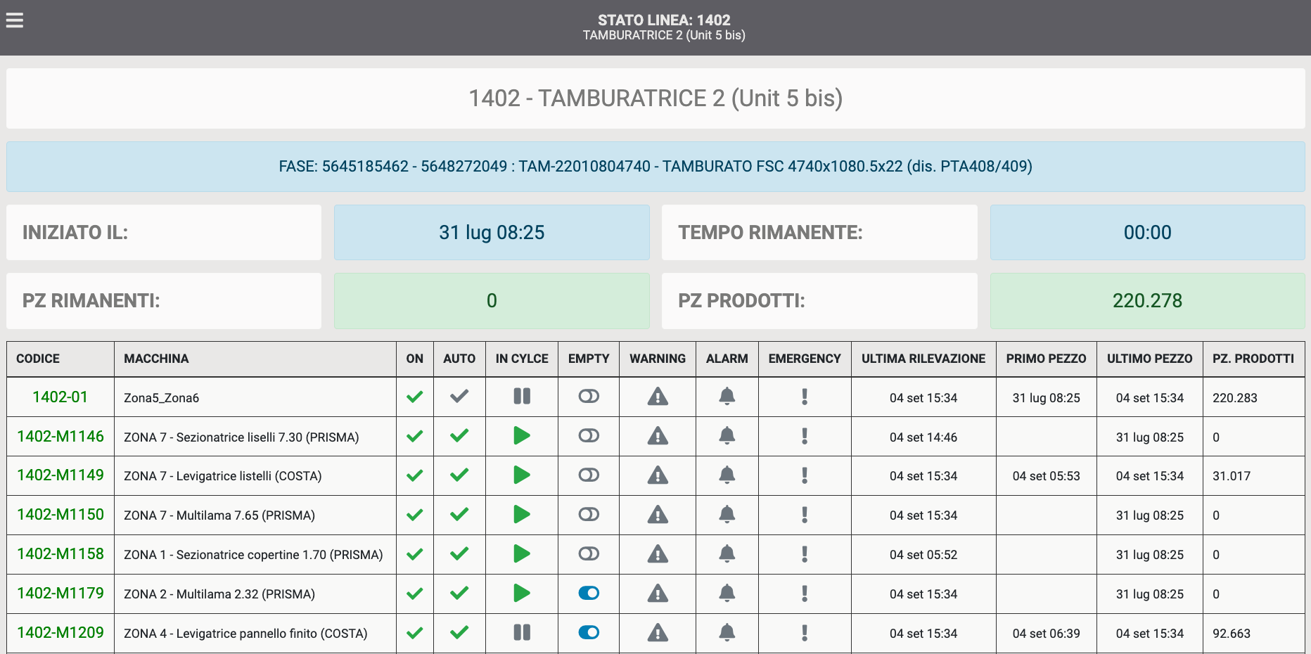 - Informazioni Stato Attrezzature.