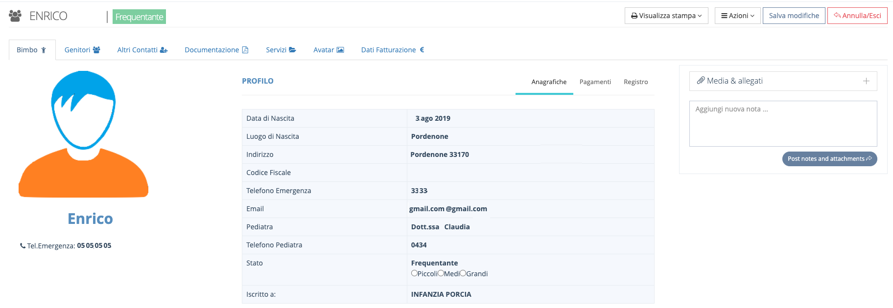 - Gestione iscrizione bimbi.