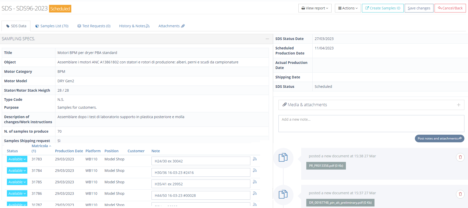 Abbiamo progettato e realizzato un'applicazione fruibile in ambiente web basata su un sistema di database relazionale in grado di gestire a 360° tutte le attività di prototipazioni condotte sulle matricole di motori elettrici: