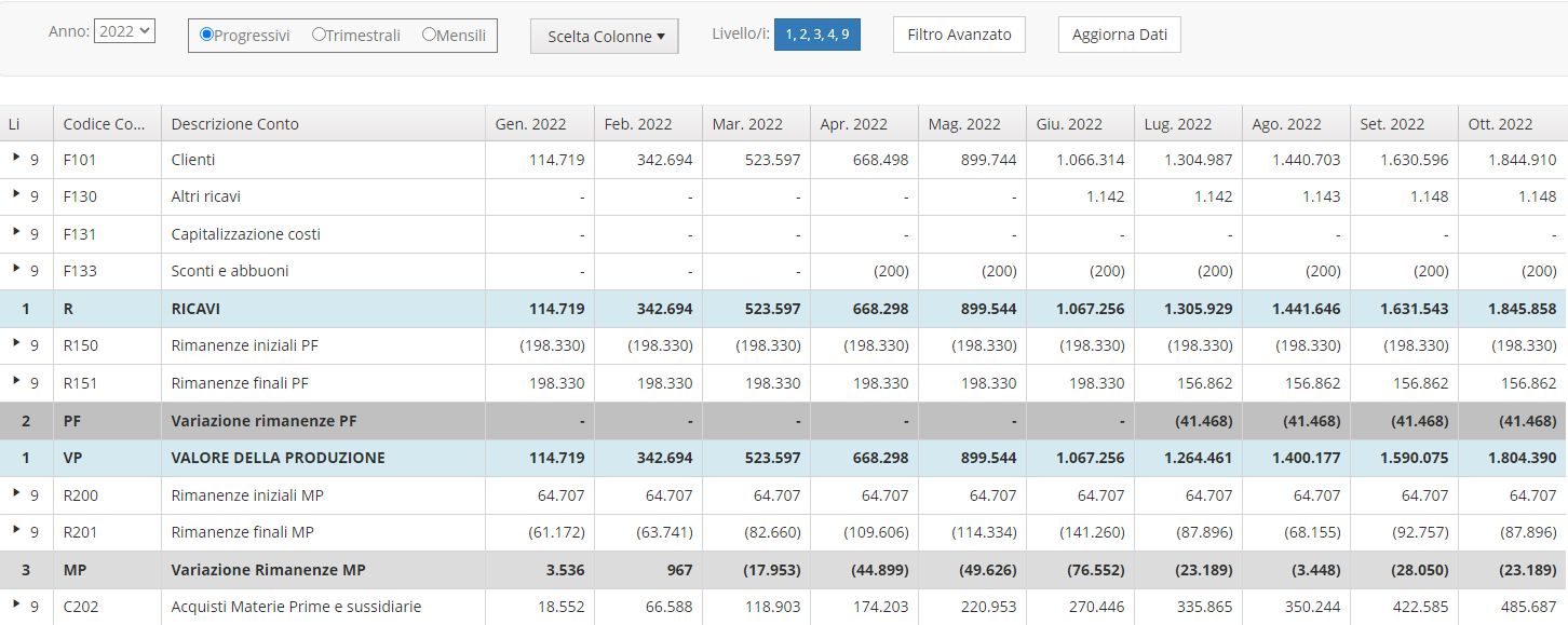 - Consente di monitorare gli scostamenti dell’andamento rispetto al budget e alla situazione